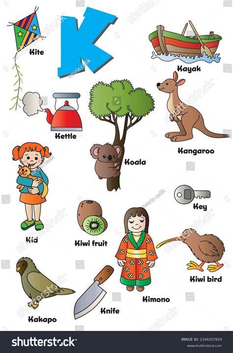 K Letter Objects and Animals Including Koala, Kite, Kettle, Key, Kiwi from www.dreamstime.com