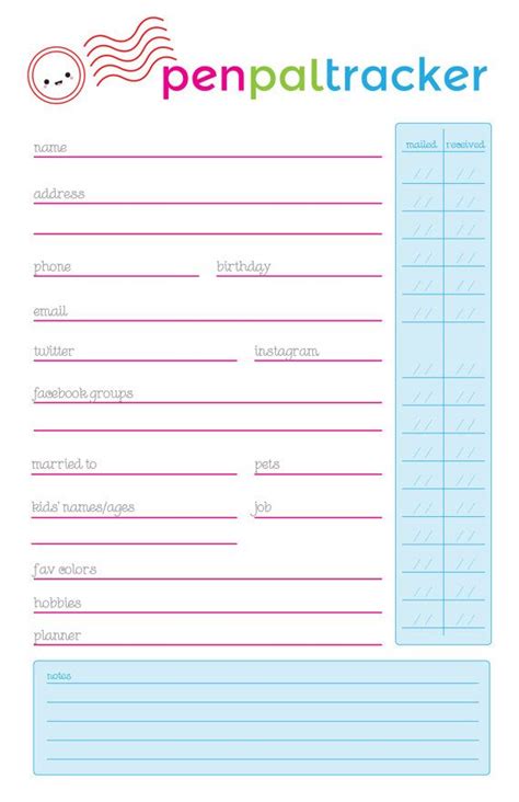 Pen Pal Tracker Pen pal tracker, Penpal, Pals from www.pinterest.com